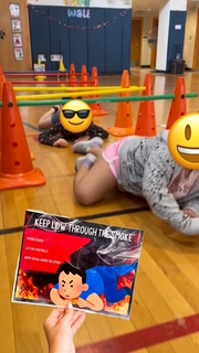 Keep Low Through The Smoke 💨Students army crawl under equipment. No tunnel? No problem! Use chairs with pool noodles laid across for a creative alternative.