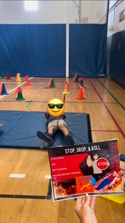 Stop, Drop, & Roll 🔥Classic practice! Students stop, drop, and roll across a panel mat.